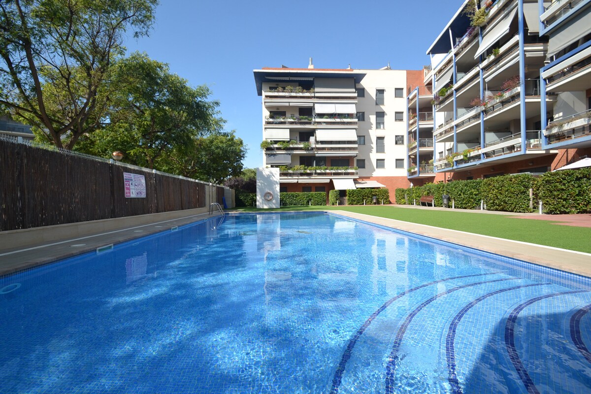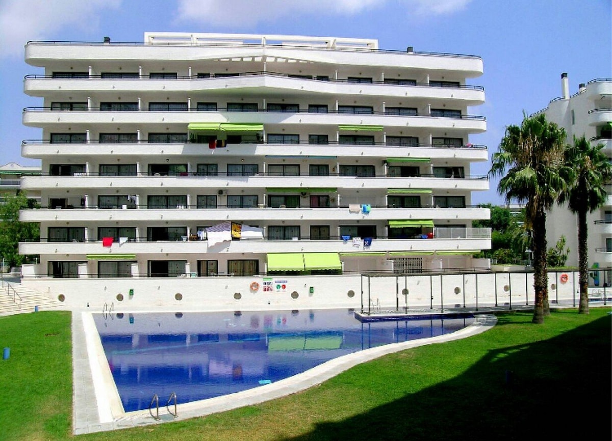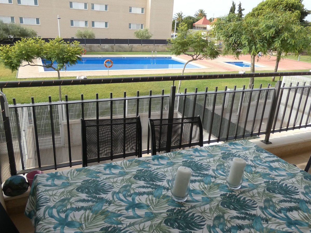 Maginhawang apartment na may napakagandang outdoor swimming pool at magandang lokasyon. Dadalhin ka ng maikli at kaaya - ayang lakad sa sentro at sa beach ng Llevant sa loob lamang ng 10 minuto. 20 minutong lakad lang ang Port Aventura, o 5 minutong biyahe. Pribadong terrace, 1 kuwartong may double bed, 1 banyo na ganap na naayos, living - dining room na may sofa bed, kusinang kumpleto sa kagamitan at libreng WiFi sa sala at terrace Malapit sa mga tindahan, supermarket, catering at leisure area, bus at renfe
