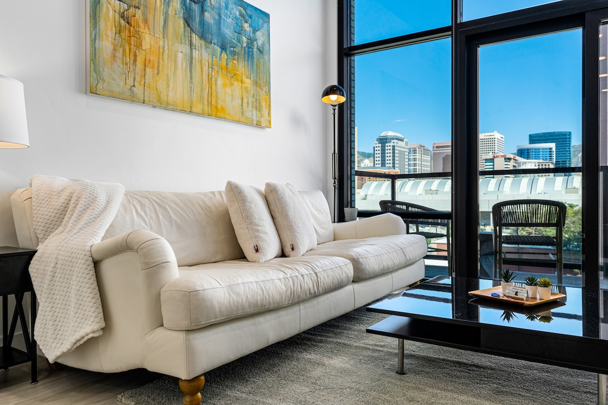 Welcome to our Stylish Urban retreat/work, conveniently located in central downtown SLC, 10 minutes from the airport and walking distance to The Gateway, Delta Center, Salt Palace, City Creek, Convention Center Ect You’ll enjoy views from the bedroom and living room as every window of this property offers great views, fast Wi-Fi speeds, Central AC/Heat Two TV's 80'' in the Livingroom and 55'' in the bedroom Streaming apps such as Amazon prime, Netflix, HBO, etc. for you to log in and enjoy.