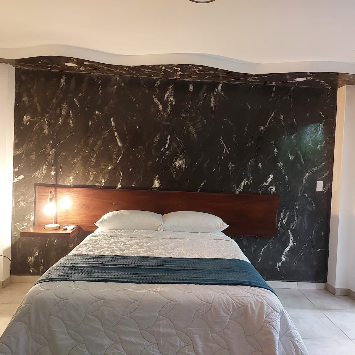 A spacious land nestled among fruit trees, Ceibos, and Guanacastes, our artistic abode invites you to unwind in a tranquil atmosphere. Adorned with handcrafted touches, this sanctuary blends rustic elegance and modern comfort. with one master bedroom and one kids room, This home is ideal for a family with young kids as it is walking distance to Wild Child Play Garden, 10 min. drive to Guiones beach, 7 min. to Pelada, and 10 min. to Ostional, a world renowned sea turtle breeding sanctuary.