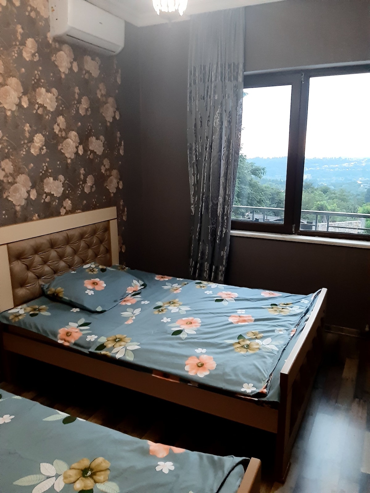 Isang komportable at komportableng apartment, na nilagyan ng lahat ng kinakailangang imbentaryo at kasangkapan. Nadidisimpekta ang apartment kapag umalis ang bawat bisita. May mga linen at tuwalya. May hindi pangkaraniwang tanawin mula sa balkonahe at magandang lokasyon - 9 April Street, # 1. Sa paglalakad, kakailanganin mo ng 10 minuto para makapagparada, 15 minuto. Sa mga paliguan at sa sentro ng lungsod. May mga supermarket, botika, panaderya, post office sa Georgia, at bus stop sa apartment.