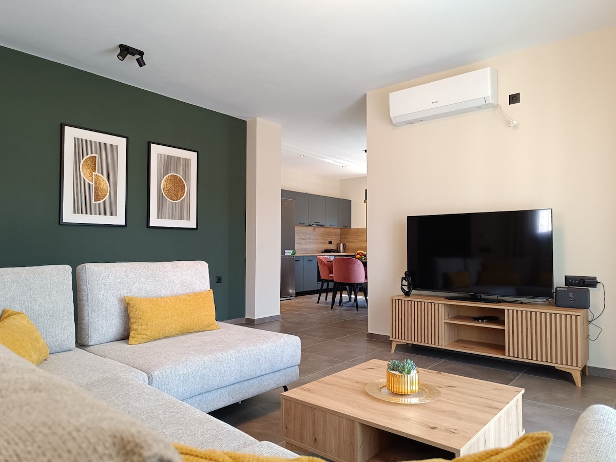 Welcome sa Angelina, isang chic at komportableng rooftop apartment na nasa gitna ng Sami at malapit sa karagatan. Dahil sa magandang lokasyon nito, mainam itong simulan para sa pag‑explore sa buong isla, at ito ang pinakamabilis na ruta papunta sa kalapit na isla ng Ithaca. At pagkatapos ng isang araw ng paglalakbay, magpahinga sa maluwang na pribadong terrace at tikman ang sariwang bundok at mga hangin sa dagat.