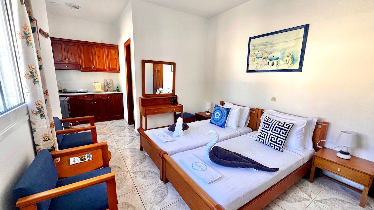 Hayaan ang mga tunog ng mga alon ng Dagat Aegean, kasama ang malambot na tradisyonal na musika na maririnig sa mga eskinita ng aming nayon, para dalhin ka sa isang maganda at nakakarelaks na biyahe . Ang apartment sa tabing - dagat na ito na maaaring tumanggap ng hanggang 4 na tao ay angkop para sa iyong pamilya, may madaling access sa lugar nito. Malapit ito sa tatlong beach at sa lahat ng tradisyonal na catering shop sa aming nayon.