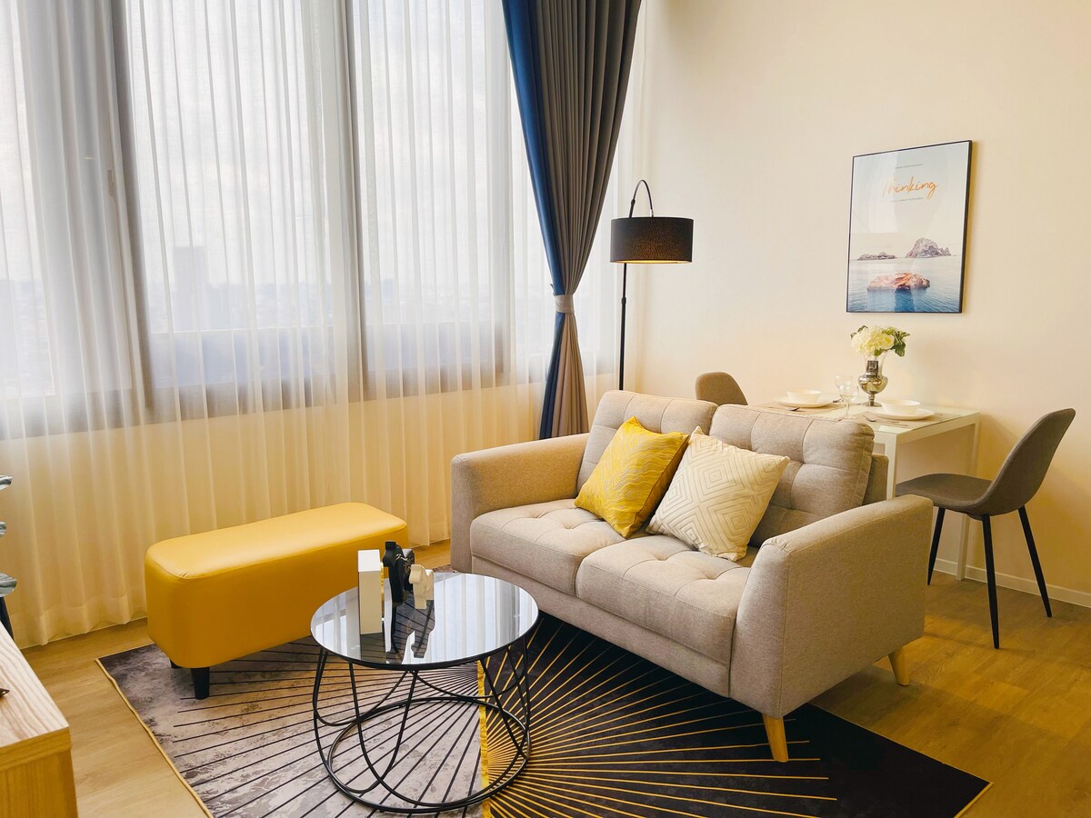 Mga tampok ng property Komportableng tuluyan: 1 kuwarto 1 banyo (sofa/lounge area/mesang kainan), madaling tumanggap ng 2 nasa hustong gulang. Pangunahing lokasyon Sentro ng transportasyon 1. 300 metro lang mula sa BTS On Nut Station (3–5 minutong lakad), direktang access sa sentro ng lungsod: 2.1 istasyon papunta sa business district ng Siam (Siam Paragon/MBK/CentralWorld/Siam Square) Direktang access sa Nana Square, T21 Shopping Mall, Four Faced Buddha, EM Mall, Gateway Mall, Ekkamai Bus Terminal, Central Embassy 3. Paglipat ng BTS sa MRT, mabilis na pag-access sa Train Night Market 4. Madaling puntahan: 200m mula sa pasukan ng highway, 500m mula sa labasan ng highway (labasan ng On Nut) Mga pasilidad sa pamumuhay (malapit lang) Kainan: 7‑11 sa ibaba, cafe, Best Beef buffet (katabi ng bahay) Supermarket: Lotus Supermarket (300 metro), Big C Supermarket (500 metro) Libangan: Napapalibutan ng iba't ibang kainan at nightlife venue Maginhawang transportasyon at all-in-one na mga pasilidad sa pamumuhay upang matugunan ang mga pangangailangan ng paglalakbay sa negosyo at bakasyon sa paglilibang, ito ay isang perpektong base upang tuklasin ang Bangkok!