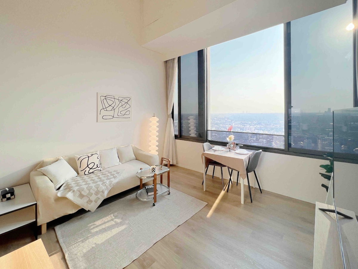 Ang apartment ko ay hindi pinaghahatiang kuwarto, ang unang palapag ay sala, banyo, at ang ikalawang palapag ay ang silid - tulugan. Puwede kang uminom at mag - enjoy sa nakakamanghang tanawin ng lungsod sa sky garden bar!