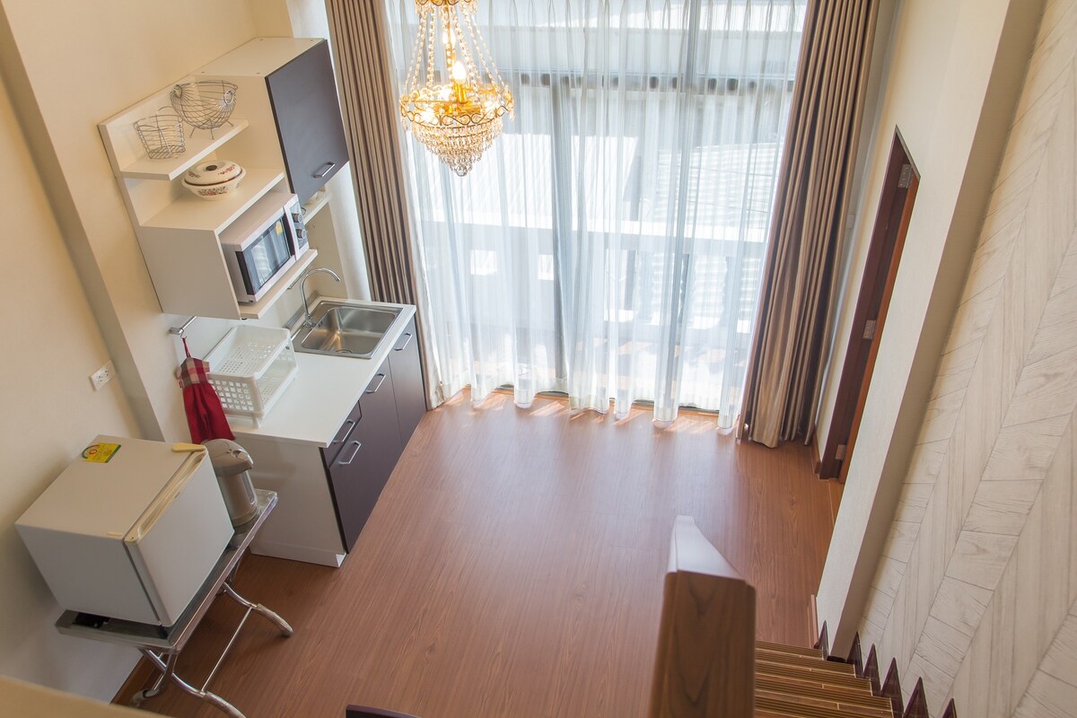 Sa Loft Allure Living Space, naniniwala kami na talagang mapapahusay ng natatanging karanasan sa pamumuhay ang iyong mga paglalakbay. Ipinagmamalaki ng aming mga bagong loft unit ang kaakit - akit na estilo ng kahoy na nagpapakita ng init, na lumilikha ng perpektong kapaligiran para sa pagpapahinga at pagpapabata. Available ang aming nakatalagang kawani nang 24 na oras sa isang araw para mabigyan ka ng walang kapantay na serbisyo at tulong. Makakatiyak ka, nakatuon kami sa pagtitiyak na makakatanggap ang iyong biyahe sa Thailand ng 5 - star na karanasan na nararapat.