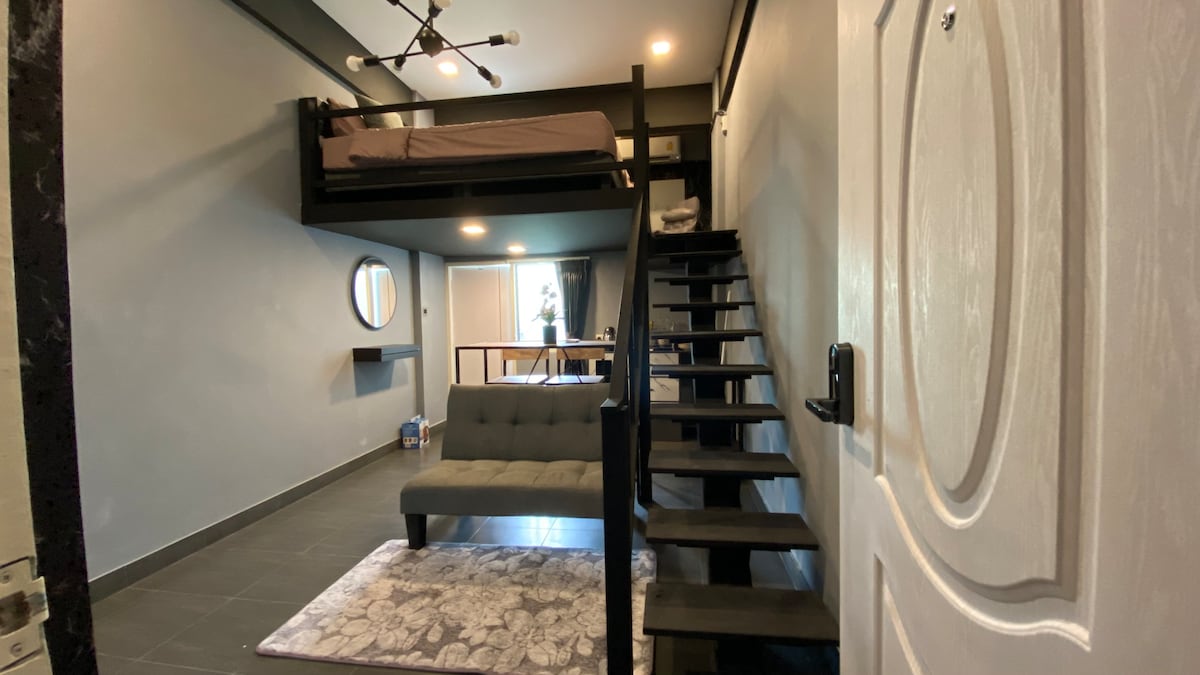 1F Komportableng loft/Malapit sa BTS Surasak/Gym w/Pool
