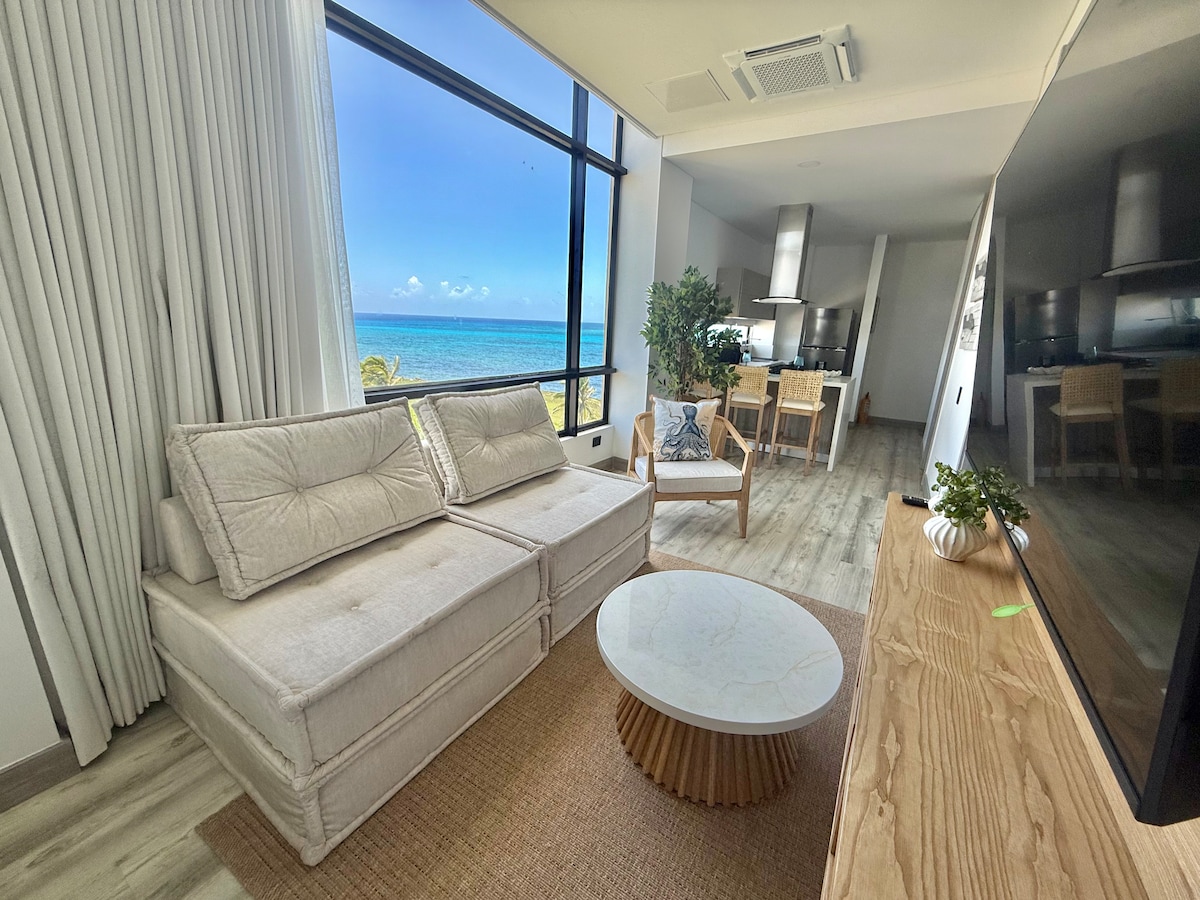 Gisingin ang nakamamanghang tanawin ng skyline. Ang magandang apartment na ito ay may nakakarelaks, urban at pampamilyang kapaligiran sa buong lugar at magandang tanawin. Magrelaks sa balkonahe habang tinatangkilik mo ang kristal na malinaw na tubig ng 7 makukulay na dagat at tumakas papunta sa isang condominium na tinatanaw ang karagatan mula sa bawat kuwarto at isang nakabalot na balkonahe, sa tahimik, ligtas at napakalapit sa beach, mga restawran at komersyo. May 24 na oras na seguridad ang gusali.