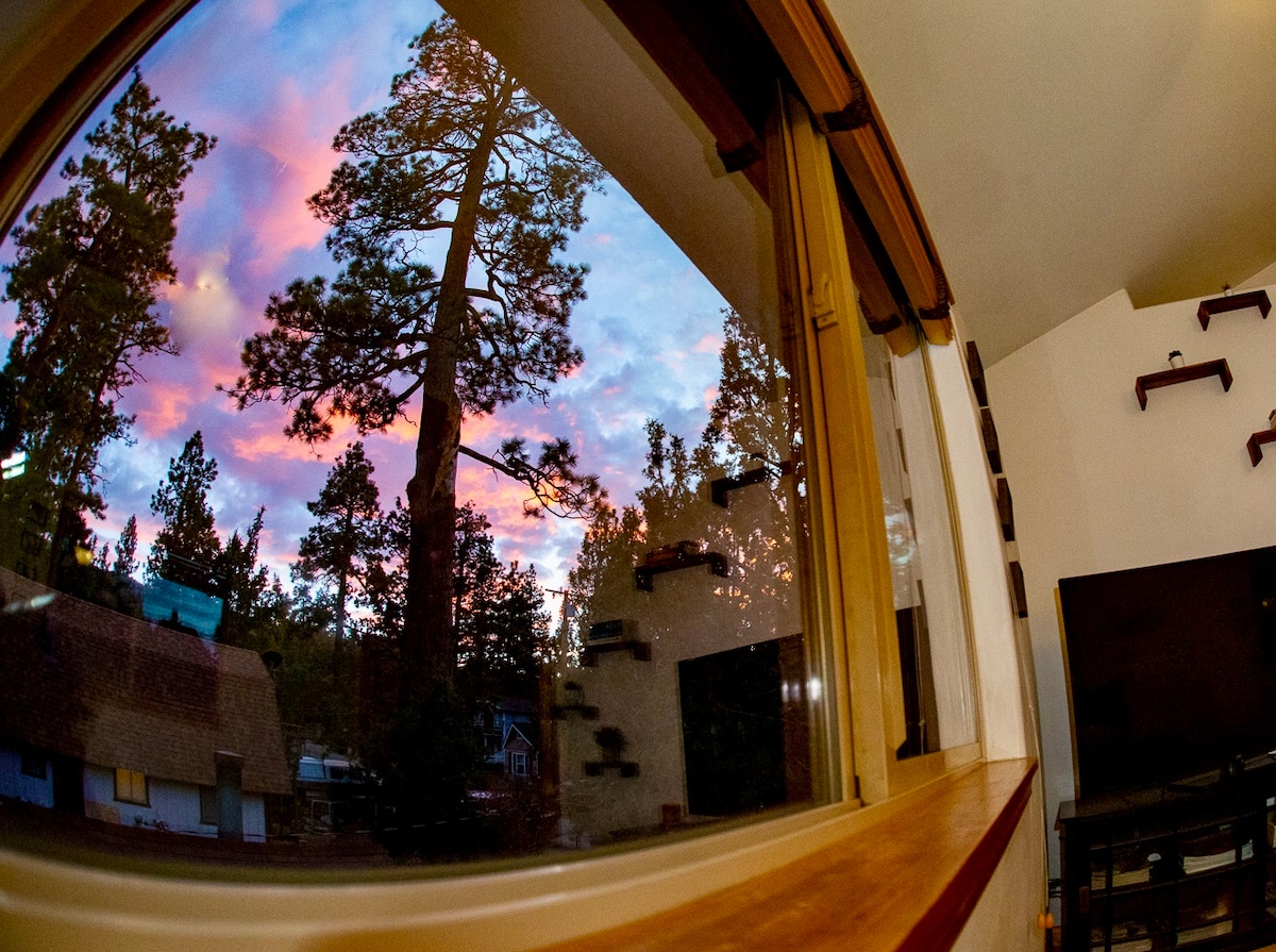 Maligayang pagdating sa aming mapayapang bakasyon sa Big Bear. Makikita mo rito ang iyong sarili na 5 minutong biyahe mula sa lahat ng iniaalok ng Big Bear at puwedeng maglakad papunta sa convention center at snow play. Malapit na ang mga slope, at matatagpuan ang mga hiking trail sa lahat ng direksyon sa labas ng aming pinto sa harap. Kapag handa ka nang magrelaks, hayaan ang aming tuluyan na alagaan ka: paginhawahin ang iyong mga kalamnan sa aming jacuzzi; bumuo ng isang umuungol, nakakarelaks na apoy sa aming fireplace na bato (o sabog ang Central AC) at i - refuel ang iyong kaluluwa gamit ang aming naka - stock na kusina.