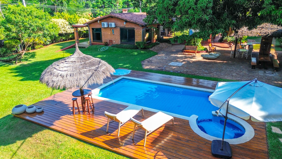 Dito maaari kang magrelaks nang payapa o magkaroon ng isang magarbong party, tulad ng gusto mo! Sa bawat kaginhawaan, sa gitna ng kalikasan at malapit pa sa San Bernardino at isang bato mula sa Caacupé kasama ang basilica nito. Masiyahan sa walang harang na tanawin ng lambak ng Ypacaraí hanggang sa skyline ng kabisera ng Asunción. Sa pool o sa terrace maaari mong tamasahin ang araw at pagkatapos ay ang romantikong paglubog ng araw. O mas gusto mo bang magkaroon ng isang baso ng champagne sa panloob na whirlpool?