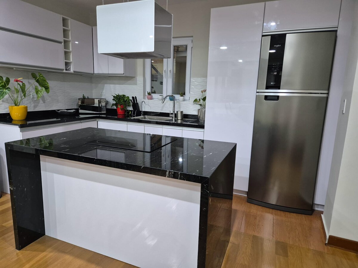 Ganap na kumpletong premiere🚗👇 loft, na matatagpuan sa Avenida Javier Prado, 4 na bloke mula sa La Rambla Shopping Center, 4 na bloke mula sa istasyon ng de - kuryenteng tren at ilang minuto mula sa sentro ng pananalapi ng San Isidro. ✔️65 ”TV Malamig na function na ✔️air conditioning (split) 🥶 ✔️Netflix ✔️Wifi Queen ✔️- sized na higaan Kusina ✔️na may kagamitan 🚙 TINGNAN ANG AVAILABILITY NG PARADAHAN Mayroon itong karagdagang halaga na 25 soles kada gabi. EKSKLUSIBO ang LOFT PARA SA DALAWANG TAO, walang PINAPAHINTULUTANG BISITA SA