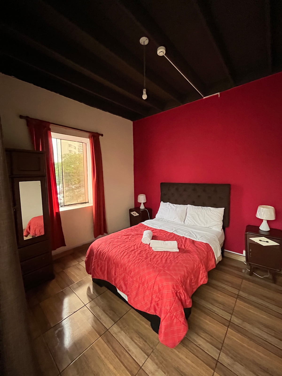 Functional Monoambient na may higaan na dalawang higaan, tuwalya, malaking bintana, aparador na may drawer, TV, kusina para sa pangunahing paghahanda ng pagkain,maliit na kusina, mesa, upuan, mga serbisyo ng tubig, kuryente, pambansang channel at internet, mayroon itong pribadong banyo na may mainit na tubig para sa eksklusibong paggamit sa labas ng kuwarto. Napakagandang lokasyon nito sa downtown area ng Pueblo Libre , independiyenteng pasukan.