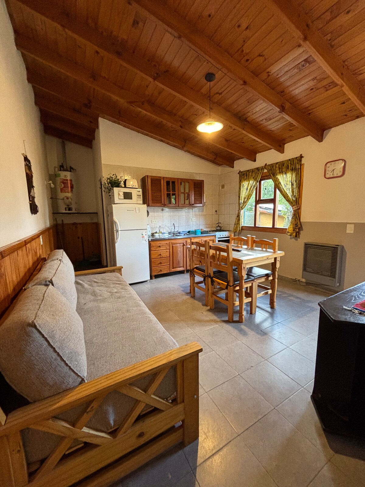 Tuklasin ang pagkakaisa ng kagubatan sa maliwanag at maluwang na bahay na ito para sa 5 tao. Ang pagtatayo nito ng mga troso at bato ay magpaparamdam sa iyo na may ganap na kaugnayan sa kalikasan. Sa sala maaari kang magrelaks, dahil mayroon itong piano, duyan ng Paraguayan, TV at tuluyan para masiyahan sa mga komportableng gabi. Sa lupain, makakahanap ka ng chulengo at mesa para sa al fresco dining. Matatagpuan 5 km mula sa Cervecería Patagonia at Colonia Switzerland, masisiyahan ka sa mga nakakabighaning tanawin ng Circuito Chico.