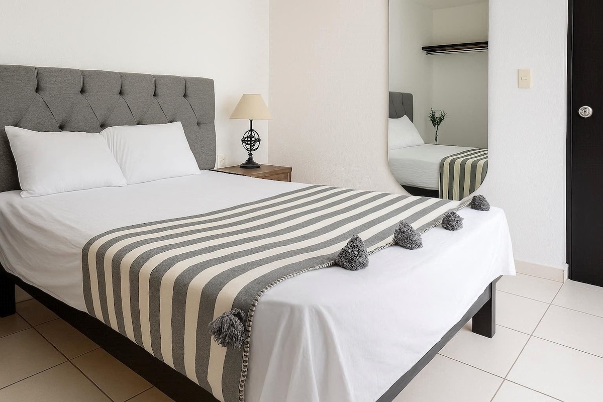 Masiyahan sa hindi malilimutang pagbisita sa Tepic sa pamamagitan ng pagho - host sa iyo sa mainit - init na apartment na ito na idinisenyo para makapagbigay ng ganap na kaginhawaan sa aming mga bisita, na may mga premium na amenidad, high - speed WiFi na nagpapahintulot sa trabaho o libangan. Matatagpuan ito malapit sa Porta de Hierro Hospital, Plaza Forum at Ecological Park, ilang bloke mula sa mga pangunahing kalsada ng Lungsod. Mainam ito para sa mga pamilya, mag - asawa, grupo ng mga kaibigan, o collaborator na umaasa ng kaaya - ayang pamamalagi sa Tepic.