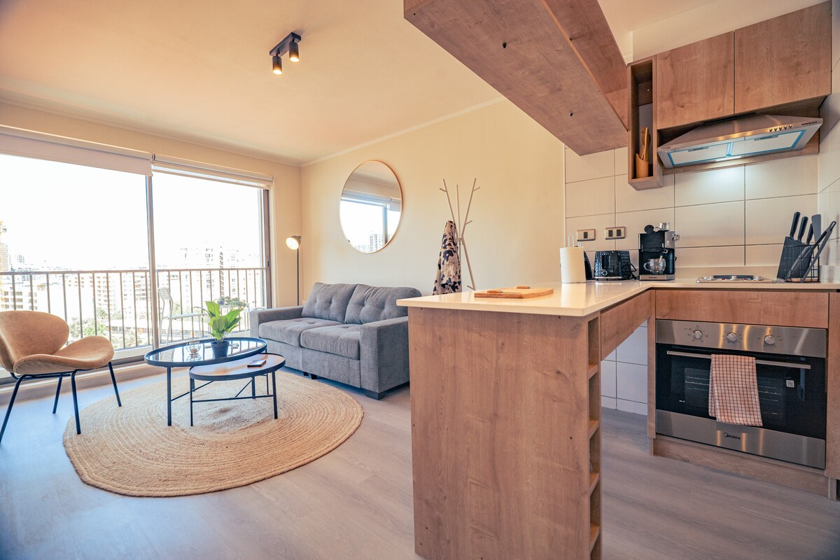 Tangkilikin ang init ng tahimik at sentral na tuluyan na ito na may napakahusay na koneksyon, 3 bloke mula sa metro Parque Almagro (linya 3) at ilang bloke ng metro Universidad de Chile ( linya 1) at Metro Toesca ( linya 2) Kung pupunta ka sa recital, ito ang opsyon na ito ay Malapit sa Teatro Caupolican at Movistar Arena. Ang Concierge ay nagpapatakbo ng 24 na oras sa isang araw. Supermarket, komersyo, pagkain sa malapit. 28m2 apartment na may 3m2 terrace