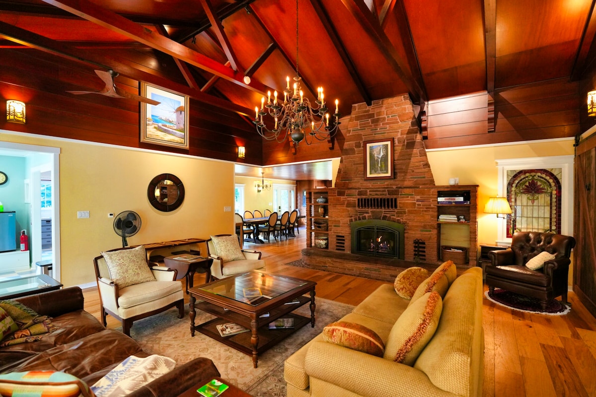 Stay in an upscale place that’s near everything you want to visit. This beautiful estate nestled within the Redwood trees, is a 10 min walk to downtown Boulder Creek restaurants and markets. The home has one of the most majestic fireplaces w/vaulted wooden ceilings in Santa Cruz County. Every room has its own private bath, jacuzzi, tub, swimming pool, beautiful front porch, deck, firepit area, and Yoga Deck. If you desire to do Yoga, please let us know with one weeks notice.