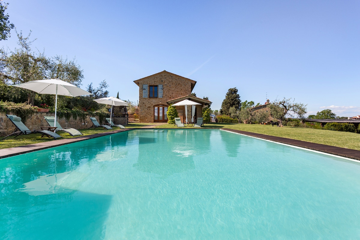 Intero piano superiore della Villa Padronale appena ristrutturata in stile tradizionale toscano.Gli alti soffitti con le travi a vista rendono il posto accogliente e perfetto per famiglie o gruppi di amici.Nella casa si trovano due grandi camini(in salotto e cucina)funzionali.Alloggio privato, non condiviso. La casa ha una ampia terrazza coperta,giardino con divani,bbq,firepit,parking privato. La piscina tra gli ulivi e i vigneti e' ideale per il relax ha un accesso privato alla zona condivisa
