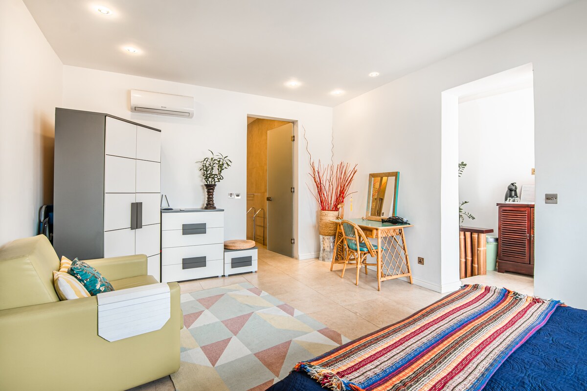 Matatagpuan ang Davana Studio sa lumang may pader na hardin at sa ibabang palapag ng aming guest house. Mayroon itong sariling pasukan at isang tahimik na tahimik na lugar para matulog, kumain at magrelaks nang may walkout access sa pool at hardin na ibinabahagi sa pangunahing bahay at sinumang bisita sa unang palapag na studio. Ilang hakbang ka mula sa mga restawran, tabing - dagat at transportasyon sa Ballutta bay. Napakalapit mo rin sa mga pasilidad ng spa at gym na puwedeng i - book para sa mga paggamot o para sa lingguhang access.