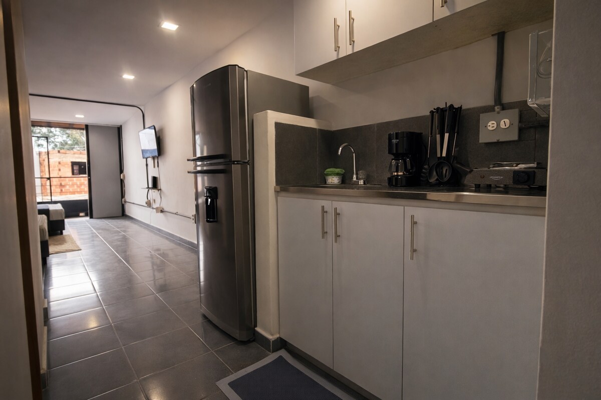 Tuklasin ang Medellín mula sa sopistikadong duplex na ito na may modernong dating. Nasa ibabang palapag ang kuwarto, at nasa itaas na palapag naman ang sala, kusina, at banyo na madaling mapupuntahan. Puno ng natural na liwanag at sariwang hangin ang tuluyan dahil sa mga bintanang nakaharap sa kalye. Matatagpuan sa isang masiglang kapitbahayan na madaling lakaran at may madaling access sa pampublikong transportasyon, mga café, supermarket, at restawran. Mainam ang high‑speed internet para sa pagtatrabaho nang malayuan at pag‑explore ng lungsod.