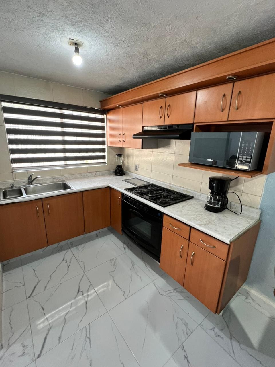 Disfruta de la sencillez de este alojamiento tranquilo y cerca del aeropuerto internacional de Guadalajara (5 minutos)en auto limpieza y sin problemas de horario para la recepción de huespedes. internet, Netflix,prime video cuenta con dos recámaras cada una con su baño y las camas son Queen size cada una y los servicios necesarios para cocinar.