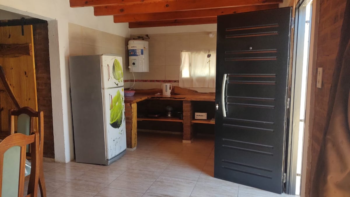 Acogedora cabaña de piedra y madera, construida con materiales de la zona, ubicada en la zona rural de Potrero de los Funes, rodeada de naturaleza viva. Es una casa preparada para desconectarse de los pensamientos y reconectarse con la energía de la sierra y la tierra, despertarse con el cantar de los pájaros, dormir mirando la luna y disfrutar del aire puro. Cuenta con una boscosa área alrededor que se comparte con otra casa de alquiler, completamente seguro.