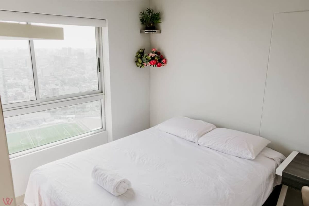 Ang natatanging lugar na ito ay may sariling estilo.Modern, maaliwalas at bagong - bago na may 4 na elevator sa isang condominium na may mga karaniwang lugar upang tangkilikin tulad ng gym, coworking room, playroom ng mga bata, terrace at napakahusay na mga panlabas na lugar na matatagpuan malapit sa pinakamalaking sentro ng komersyo ng Lima Jockey Plaza, at shopping center, polo, hippodrome museo at unibersidad na madaling ma - access para sa pampublikong transportasyon, tahimik at ligtas na lugar na may mga cellar na ilang metro ang layo.