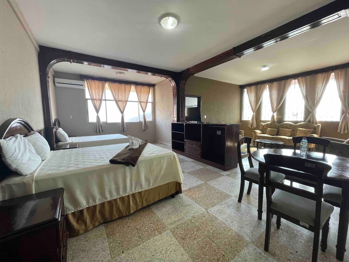 Elegante at komportableng kuwarto na matatagpuan sa sentro ng Malacatan ilang hakbang mula sa Starbus na may 24 na oras na serbisyo 2 bloke mula sa central park