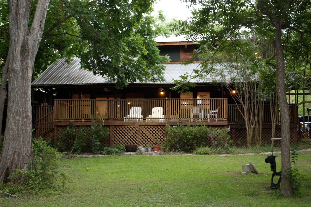 Mag-enjoy sa mga tanawin ng kagubatan mula sa pribadong balkonahe at window bar, na nasa liblib na lugar na may punong kahoy malapit sa Alligator Creek. Isa itong pribadong suite sa unang palapag sa isang bahay‑pansulit na may dalawang yunit (hindi ito shared na tuluyan) na may sariling pasukan, balkonahe, at paradahan. Walang pinaghahatiang mga panloob na lugar. Gruene Hall: 2 milya Chandelier ng Gruene: 2 milya Paliparan ng Austin: 39 mi S. A. Airport: 28 milya Schlitterbahn: 4 na milya