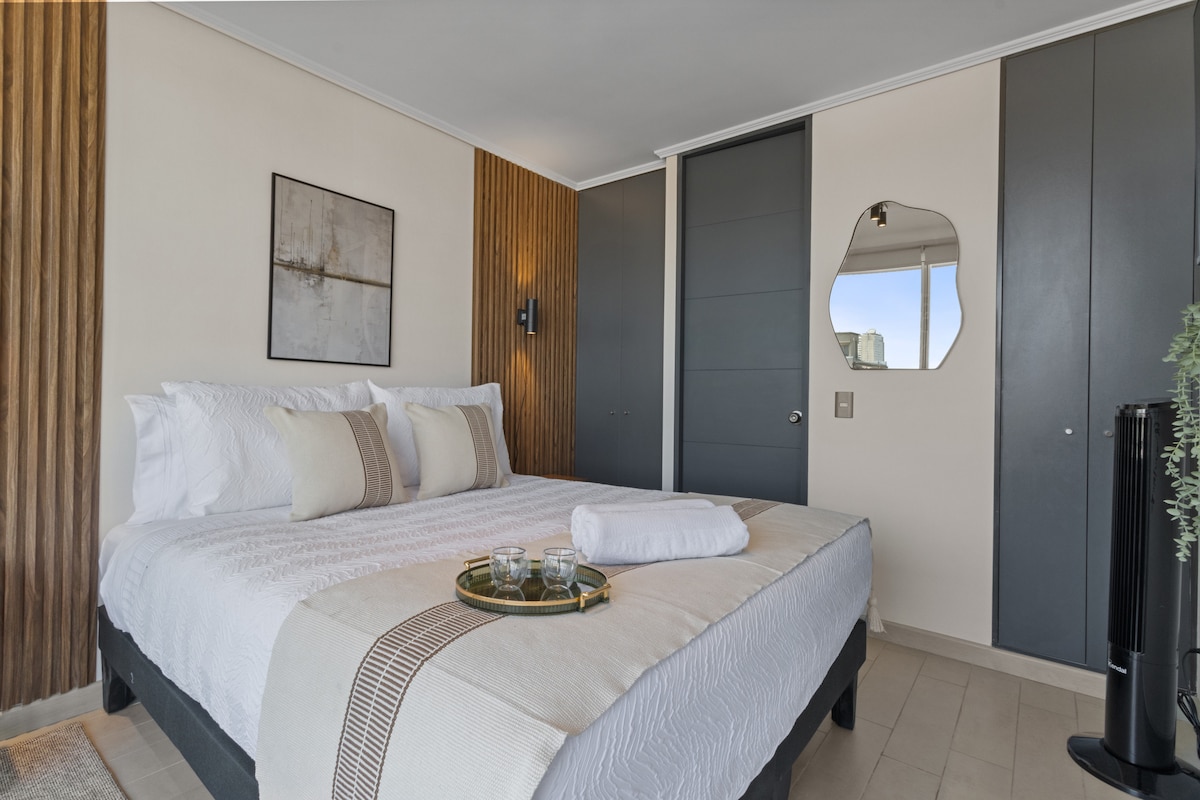 Maginhawa at maliwanag na apartment na may balkonahe, nilagyan ng queen bed at futon para sa ikatlong bisita. Kumpletong Kusina na May Kumpletong Kagamitan Wi - Fi 500 Mbps Smart TV Libreng pag - iimbak ng bagahe Mainam para sa alagang hayop 3 minuto lang ang layo mula sa Departmental Metro, malapit lang ang mga supermarket, restawran, at cafe. 5 minuto lang ang layo ng Central highway. Masiyahan sa gym, mga lugar ng barbecue, at self - service na labahan sa ligtas na residensyal na gusali na may 24/7 na concierge. Mainam para sa mga mag - asawa at matatagal na pamamalagi. Mag - book at maranasan si Santiago na parang nasa bahay ka!