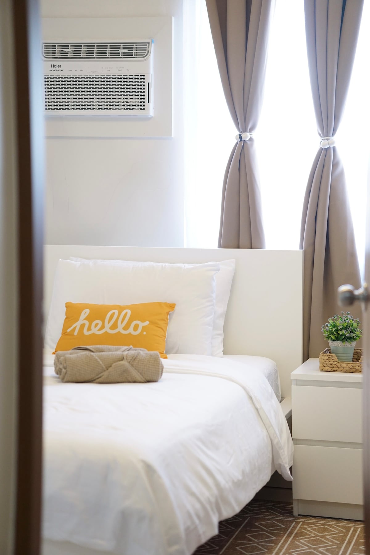 Bago ang unit, may lahat ng amenidad tulad ng 50 Mbps WiFi, sound bar at PlayStation na may access sa Netflix, HBO Max at Prime Video, malapit ang lokasyon sa mga sumusunod na tanggapan ng Gobyerno, DENR, DPWH, at Camp Vicente Lim. Nilagyan ang kuwarto ng air - conditioner at Sharp Plasmacluster air purifier na may built in na kumpol ng lamok.