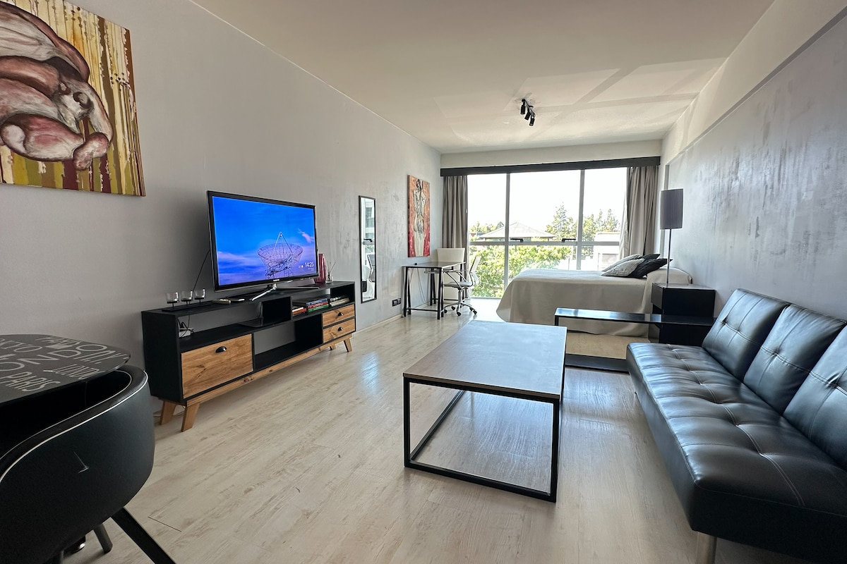 Monoambiente na 39 mts2 at balkonahe na 5 x 1.40 mts, nakaharap sa Hilaga at may araw sa buong taon sa North Coral Plaza Complex. Dto 223 Makabagong estilo, naka-air condition, komportableng kusina, silid-kainan, desk, at kuwarto. Internet, Internet TV, microwave, electric oven at anafe, blender, filter at capsule coffee maker at kumpletong kagamitan sa kusina. Sauna. Concierge at 24 na oras na seguridad. Mahalaga: Sa Airbnb lang kami namamalagi.