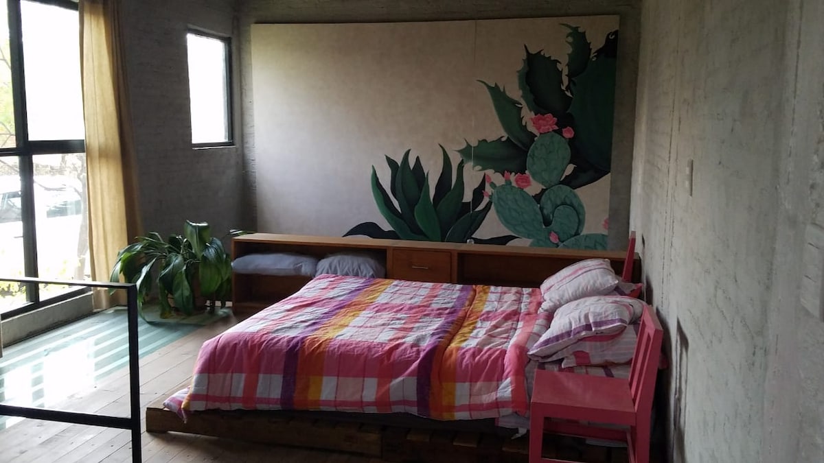 Loft, in front of the largest park in the city, next to the Hotel "Grand Fiesta Americana", 15 minutes from the temple of "Santo Domingo de Guzmán" and the best known tourist, cultural, wedding venues and entertainment attractions. Get to know the "Barrio de Jalatlaco", famous for its architecture and bohemian atmosphere. All walking. The terrace has an incomparable view of the mountains and the treetops. Design, location and functionality. An exclusive place to fall in love with Oaxaca!!