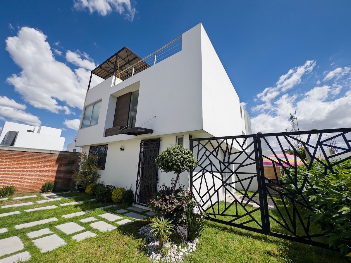 Komportable, maluwag at maliwanag, na matatagpuan dalawang minuto mula sa Plaza Explanada, 2 minuto mula sa peripheral at diretso sa Cholula at 6 na minuto mula sa Center of Cholula. Mayroon itong 3 maluwang na kuwarto, lahat ay may sariling buong banyo. Master bedroom na may pribadong sala na may screen at maluwang na walk - in na aparador. Mayroon kaming lugar sa opisina para sa trabaho. Optic fiber high - speed Wi - Fi connection high - speed fiber high - speed Wi - Fi connection Saradong bahagi. Nagbibigay kami ng mga linen, tuwalya, inuming tubig, natutunaw na kape, at asukal.