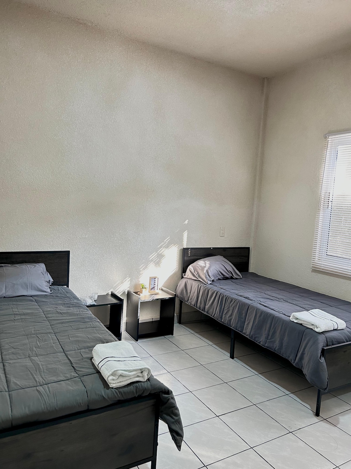 Habitación con dos camas listas para que descanses CON CALIDAD EN LIMPIEZA ⭐️⭐️⭐️⭐️⭐️ y disfrutes de lugares de playa cercanos. P. Arista a 40 min. P. Santa Brígida a 35 min. Iguanario a 5 min. Balneario a 5 min. DESAYUNO (pago) opcional
