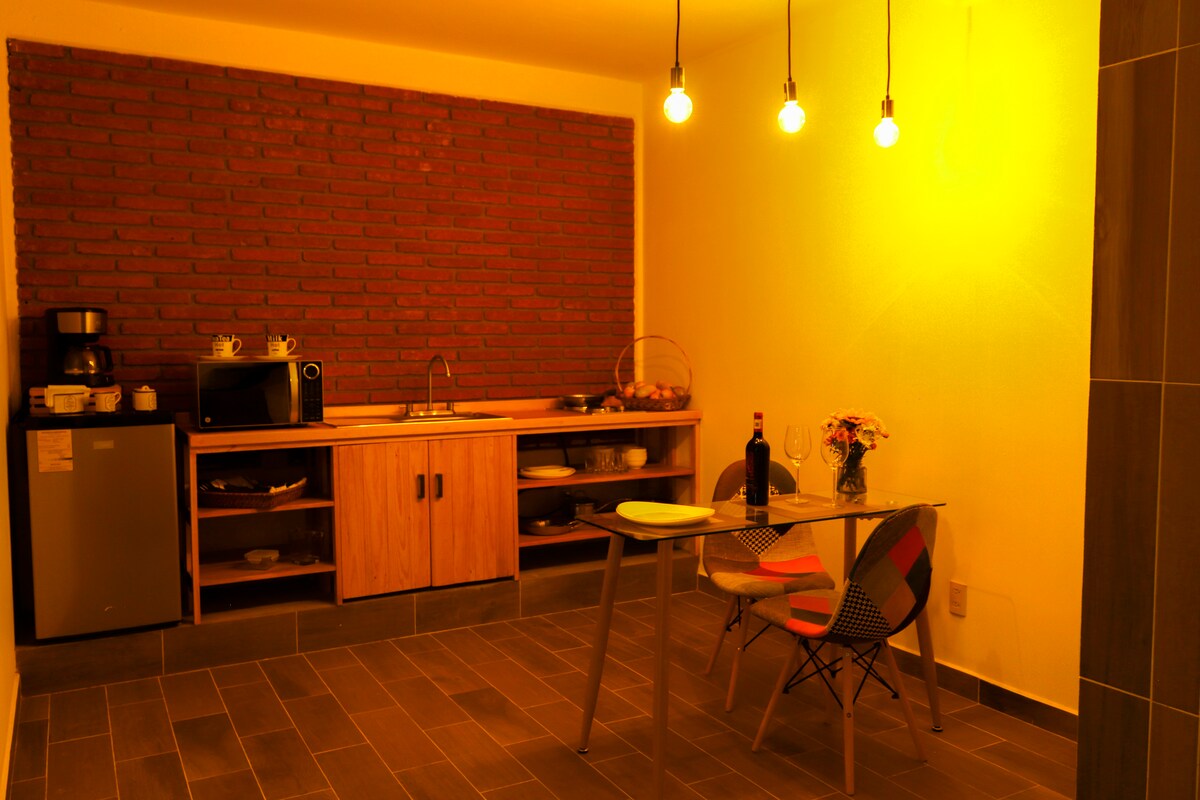 Komportableng loft, Matatagpuan sa San Bartolo Coyotepec, "Ang ruta ng katutubong sining ng Oaxacan". Nilagyan ng 2 silid - tulugan, 2 kumpletong banyo, maliit na kusina, wifi, tv, paradahan, terrace at hardin. Matatagpuan 10 minuto mula sa paliparan, ang administrative complex ng judicial city, isang hakbang ang layo mula sa mga ospital at korte. Ang iyong pamamalagi ay magkakasundo sa kalikasan!