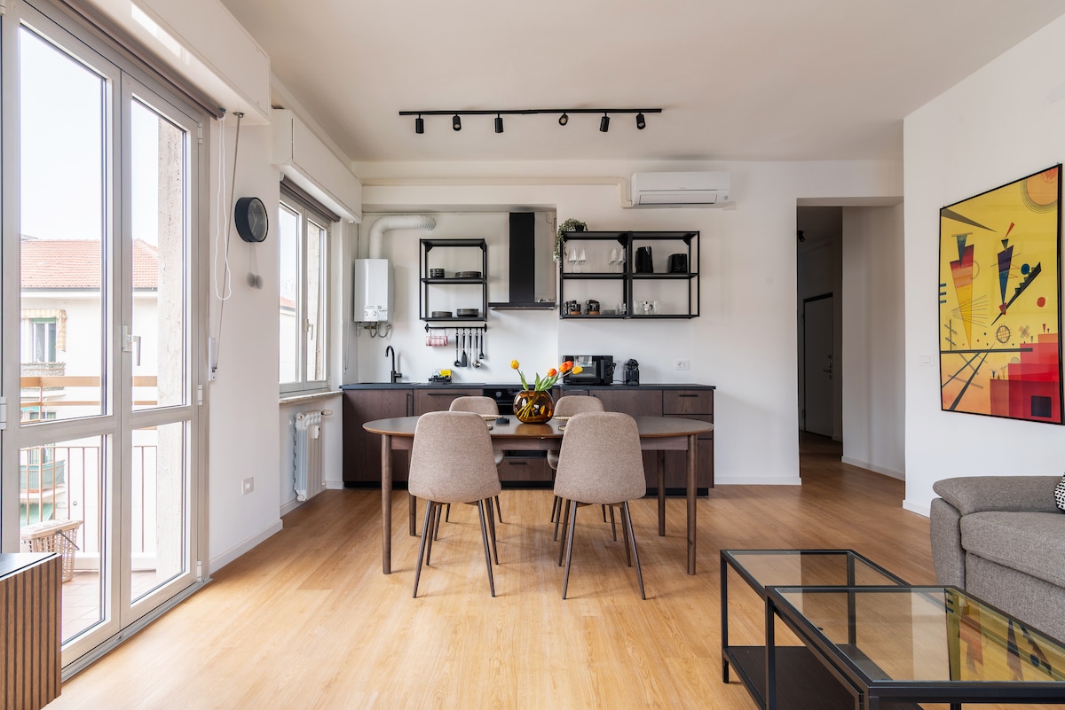 Ang eleganteng apartment na ito na may dalawang terrace sa gitna ng San Siro ay perpekto para sa mga pamilya, mag - asawa, at grupo ng mga kaibigan. 5 minutong lakad lang mula sa San Siro at malapit sa mga racetrack, ito ang mainam na batayan para sa mga tugma, konsyerto, at fair (Salone del Mobile, atbp.). Matatagpuan sa ligtas at maayos na lugar, na may mga supermarket at restawran sa malapit, at malapit lang ang metro. Isang komportable, maliwanag, at maayos na apartment para maranasan ang pinakamaganda sa Milan. Mag - book na at mag - enjoy sa natatanging karanasan!