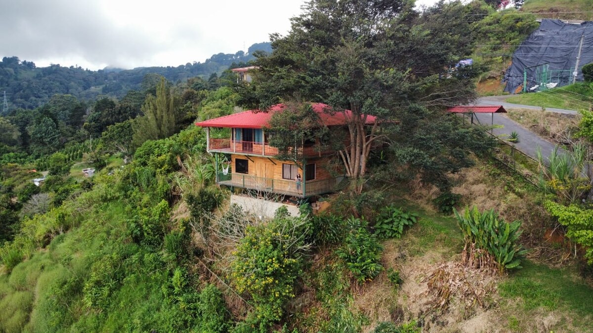 Kamangha - manghang bahay na matatagpuan sa mga slope ng Poás Volcano(pasukan ng pambansang parke sa loob ng 1h), na napapalibutan ng mga hindi kapani - paniwalang tanawin ng Central Valley ng Costa Rica at kalikasan, sa isang lugar na kilala sa paglilinang ng mataas na altitude na kape at mga bukid ng pagawaan ng gatas. Puwede kang mag - enjoy at magrelaks sa terrace na may mga kahanga - hangang tanawin, mag - hike, at bumisita sa maraming atraksyon sa kalikasan sa paligid. Isang natatangi at tahimik na bakasyunan na may cool na klima sa 1,253 metro sa itaas ng antas ng dagat sa kabundukan ng lungsod ng Grecia.