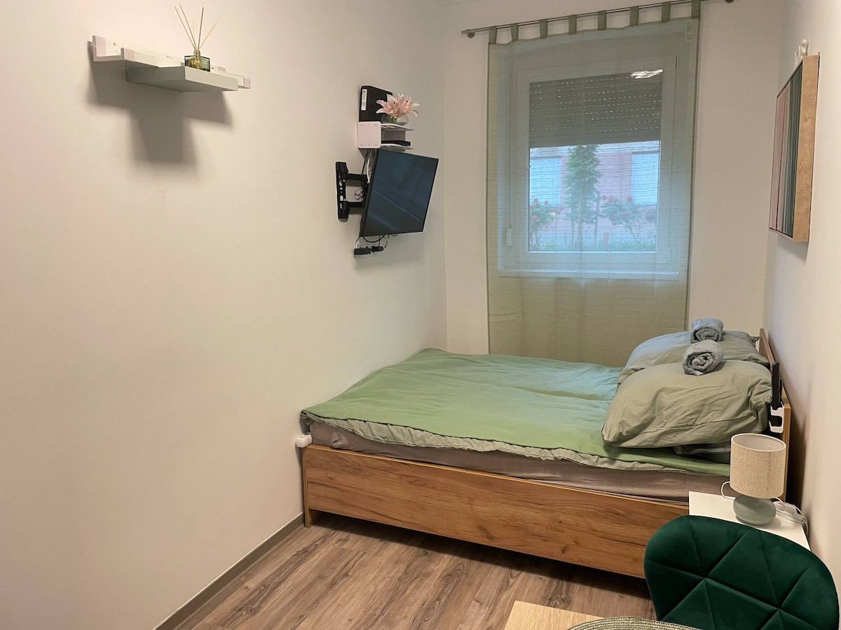 Our apartment is located in the center near the Water Tower at Szent István Square, within walking distance of Széchenyi Square. What we offer Fully equipped, apartment Free Wi-Fi Comfortable double bed Air conditioning and heating TV with Telekom cable and streaming apps Kitchen with all necessary utensils, including a coffee grinder and coffee maker Clean bed linen and towels, washing machine, and iron Private bathroom with shower and hairdryer