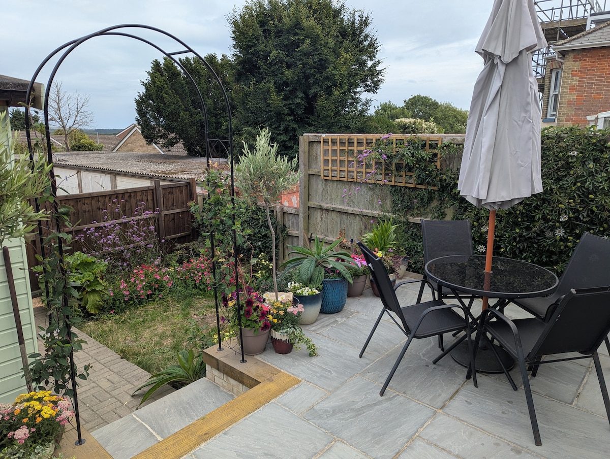 'Seasalt', bahay na may 2 kuwarto. Dalawang minutong lakad lang papunta sa landas sa tuktok ng talampas na magdadala sa iyo sa magagandang mabuhanging dalampasigan ng Lawa. May isang paradahan sa tabi ng kalsada at hardin sa bakuran ang property. Nasa pagitan ng Sandown at Shanklin ang lawa kung saan puwede kang maglakad sa tabi ng beach o sa daan sa tuktok ng talampas papunta sa alinman sa dalawang lugar. Madaling puntahan ang mga lokal na amenidad at istasyon ng tren.
