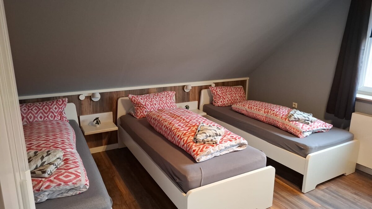 Ang aming maliit na maginhawang apartment ay matatagpuan nang direkta sa aming bahay sa gitna ng unang dike. Mayroon kang maliit na kusina, silid - tulugan na may TV, Bluray player at desk. Sa ground floor ay naroon din ang maliit na banyo. Hanggang sa isang hagdanan ay isa pang maliit na silid - tulugan na may 2 kutson sa mga palyete ng euro.