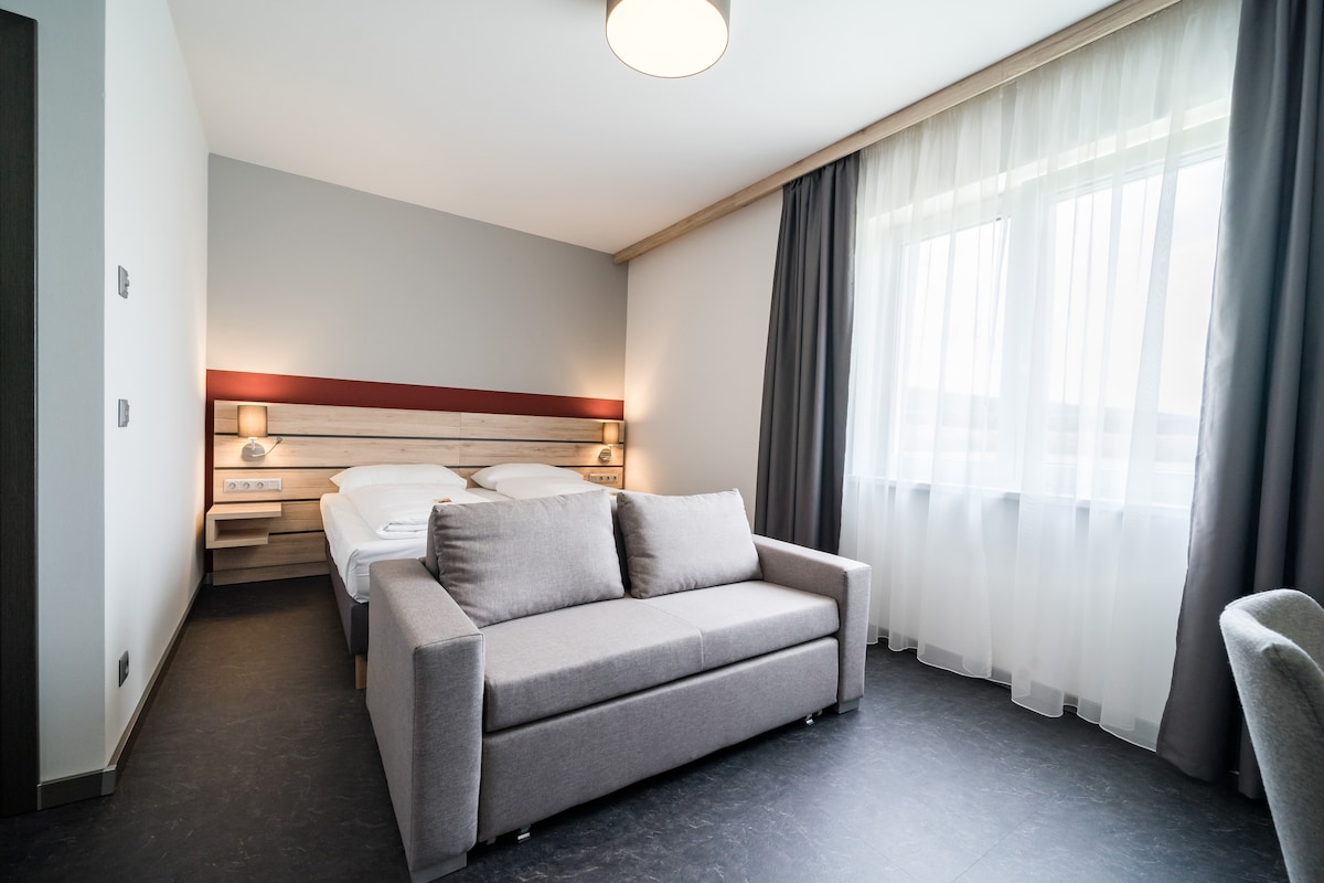 Das Tüpfelchen auf dem "i" für deinen Aufenthalt! Mehr Platz & ein gemütliches Sofa für Euch, mit oder ohne Kinder.