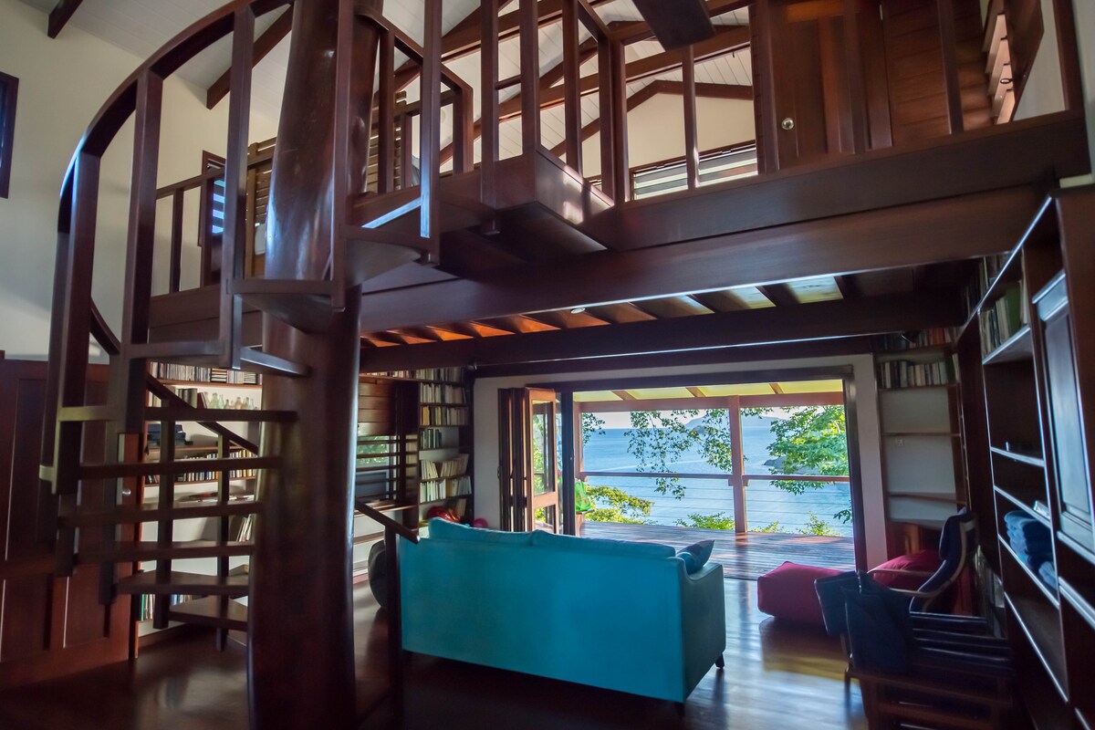 Pinakamagandang tanawin sa Santo! Bagama't mas matanda at hindi Taj Mahal ang bahay, ito ay isang rustic, nakakarelaks, at napakapribadong tuluyan sa 5 acre ng lupa na may nakamamanghang tanawin ng Sarunda Bay. May 90 square meter na may bubong na deck na umaabot sa tubig, na may bar, gas BBQ, at malaking mesa. 2 sleeping area, isang outdoor tropical garden shower + ensuite + 3rd bathroom. 7 ang kayang tulugan (4 na higaan), kumpletong kusina, Internet, air-conditioning, mga bentilador at malamig na simoy ng dagat - isang tropikal na paraiso na hindi mo nais iwanan!
