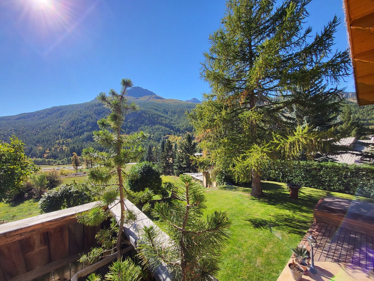 Welcome sa Le Carré de Bois Cottage! Matatagpuan sa mainam na lokasyon sa matataas na bahagi ng Briançon, nag‑aalok ang aming chalet ng maaliwalas na kapaligiran, mga pambihirang tanawin, maingat na piniling dekorasyon, at mga komportableng amenidad para matiyak na magiging maganda ang pamamalagi mo sa aming kabundukan! Malilinaw ng araw ang terrace at hardin, kaya matatanaw mo rito ang asul na kalangitan at ang nakamamanghang tanawin ng mga bundok sa paligid.