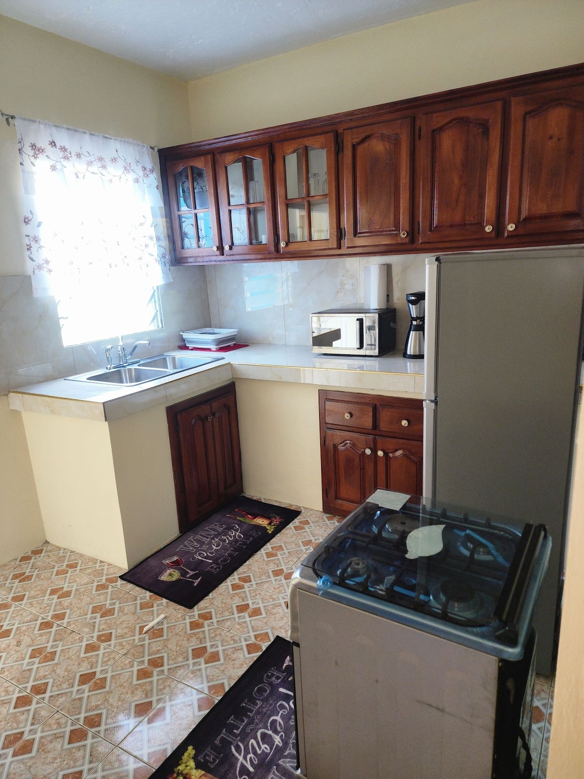 Nakaupo sa gitna ng Santa Cruz, ang marangyang moderno at maluwag na two - bedroom, one - bathroom sa itaas na palapag ng gusaling ito ang perpektong bakasyunan para makapagpahinga kasama ng buong pamilya. Maginhawang matatagpuan sa loob ng maraming Jamaican hotspot sa South Course, ang tuluyang ito na may mga nakamamanghang tanawin mula sa gazebo at balkonahe nito ay magsisilbing perpektong pagtakas habang nasa iyong pamamalagi sa Caribbean. Masiyahan sa panonood ng mga pelikula sa 75"na telebisyon sa living area/manood ng TV sa iyong mga kuwarto; maglaro ng domino, atbp. kasama ang pamilya.
