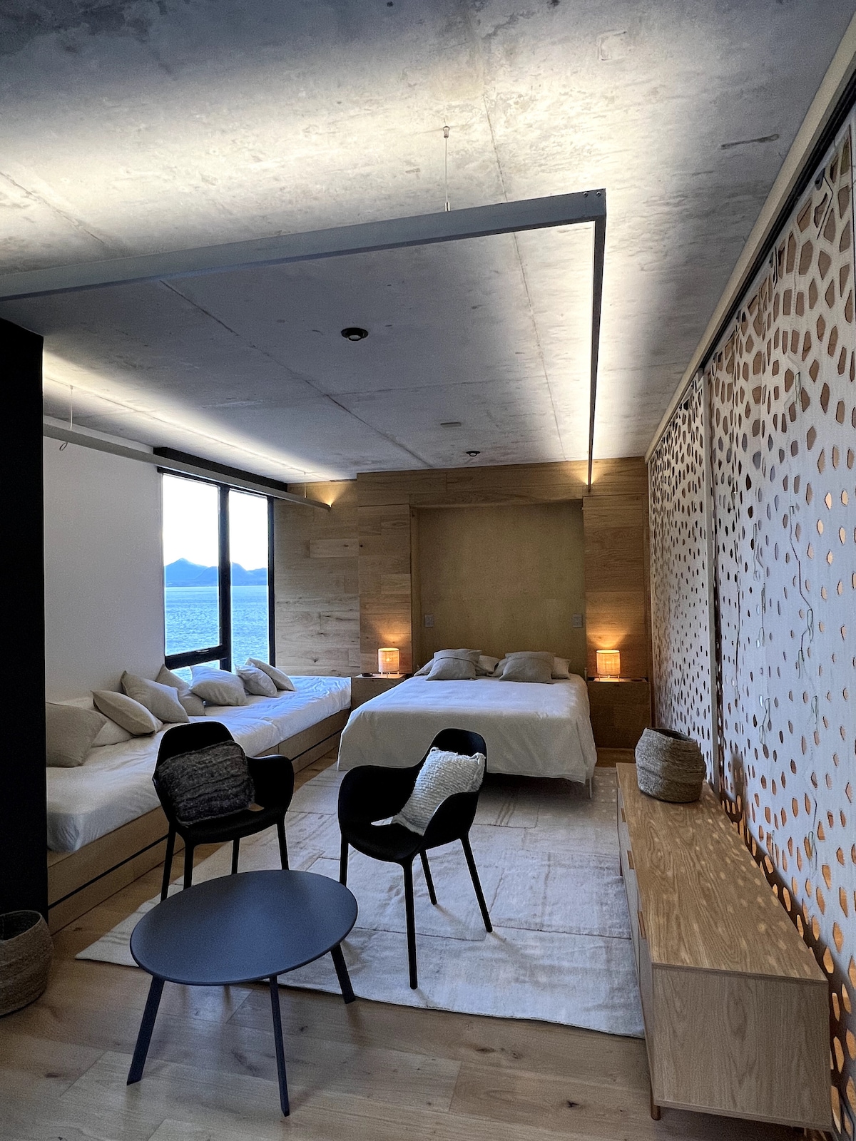 Ang Casa Amate ay isang natatanging bahay na nakaharap sa salamin na itinayo sa gilid ng bundok kung saan matatanaw ang isa sa pinakamagagandang lawa ng tubig - tabang sa buong mundo. May tatlong silid - tulugan at tatlong banyo, anim na tulugan, ito ang perpektong lugar para magrelaks, magrelaks, at makibahagi sa mga nakamamanghang tanawin ng lawa at ng tatlong bulkan nito. Itinayo sa mukha ng bato, ngunit nasa harap pa rin mismo ng lawa, ang bahay ay bumaba sa apat na antas, na may maraming mga terrace. Ang tuluyan ay tinukoy ng batong mukha, salamin, kongkreto, kahoy at liwanag.