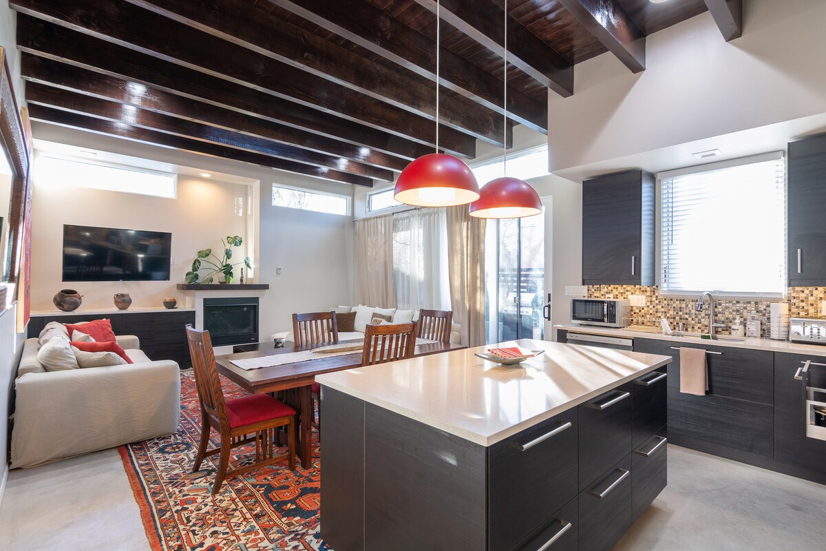 Luxury designer ground - floor apartment sa Baca Railyard District ng Santa Fe. Kumpletong kumpletong kusina ng chef na may kainan para sa 4, dishwasher, labahan. pribadong patyo, mga hakbang mula sa Cafecito (coffee shop), sentro ng Meow Wolf, Railyard Park, at Plaza. + Buong Kusina + Dishwasher + Washer/Dryer + Komportableng King Bed + A/C & Radiant Heat Madaling ma - access sa downtown sa pamamagitan ng magagandang trail. High - speed internet. King bed na may mga marangyang sapin. Malapit lang ang Whole Foods & Trader Joe. May mga karagdagang available na unit.