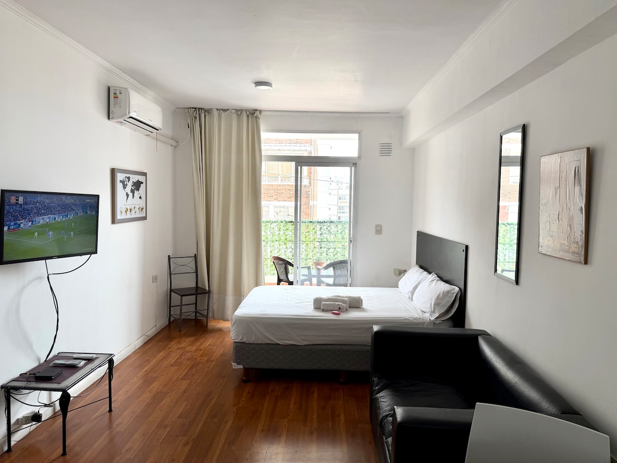 Mag - enjoy ng natatanging karanasan sa premium na tuluyang ito. Matatagpuan sa poste ng turista at gastronomic ng lungsod ng Rosario, at isang bloke lang mula sa Rio Parana at 3 mula sa Bv. Oroño, ang Cardinal Rio Building ay may sobrang maluwang at komportableng single - room semipisos. Rooftop: Parrillero, solarium na may shower at tanawin sa ilog. Tanawin ng parke ng mga koleksyon, mula sa tuluyan, madali kang makakapaglakad papunta sa pinakamahahalagang atraksyong panturista ng lungsod.