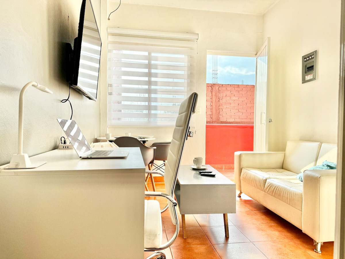 Matatagpuan ang apartment na ito sa downtown Oaxaca at may perpektong lokasyon para bumisita sa Oaxaca at nag - aalok ng High speed WiFi. Matatagpuan ito malapit sa pinakamahalagang lugar sa downtown, isang madaling kalahating milya na lakad o 750 metro mula sa Front Door ng Gusali at makikita mo ang Andador Turistico at ang Simbahan ng Santo Domingo de Guzmán. 10 minutong lakad papunta sa magagandang Restawran at terrace na matatagpuan sa Andador, ligtas ang kapitbahayan at maraming tindahan ng Coffees.