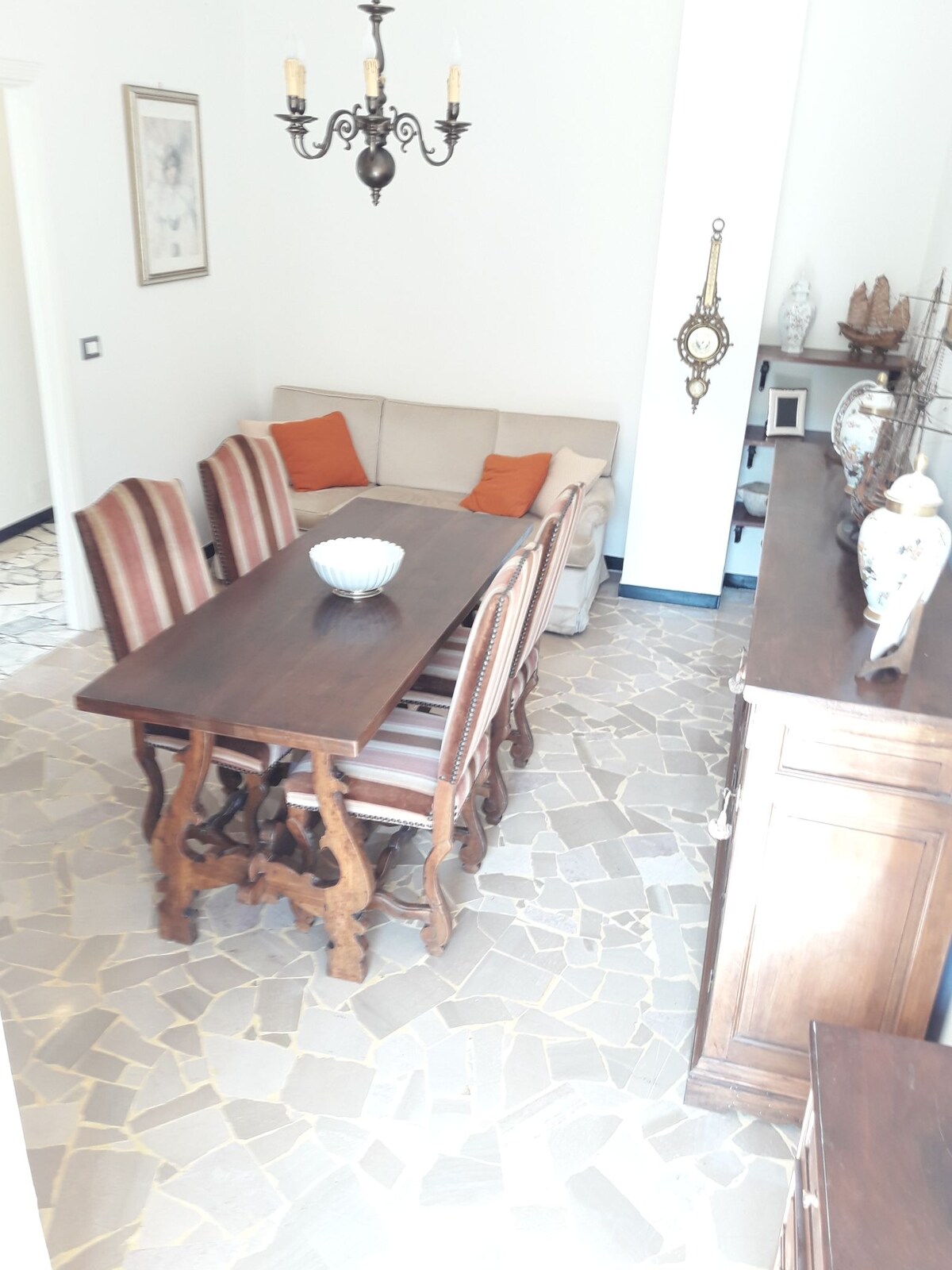 Ang apartment, na may klasikong estilo, na may kalidad na Genovese na sahig at mga natatanging mataas na kisame na may kahanga - hangang stucco, ay perpekto para sa malalaking pamilya at nagbibigay ng posibilidad na magsaayos ng mga tanghalian o hapunan sa negosyo o kasama ang mga kaibigan. Tinatangkilik ng prestihiyoso at eleganteng apartment na ito ang napakagandang lokasyon: matatagpuan ito sa Via Della Vittoria, sa gitna ng Rapallo, sa makasaysayang sentro. Malaking sukat, sa ikalimang palapag - na may elevator.