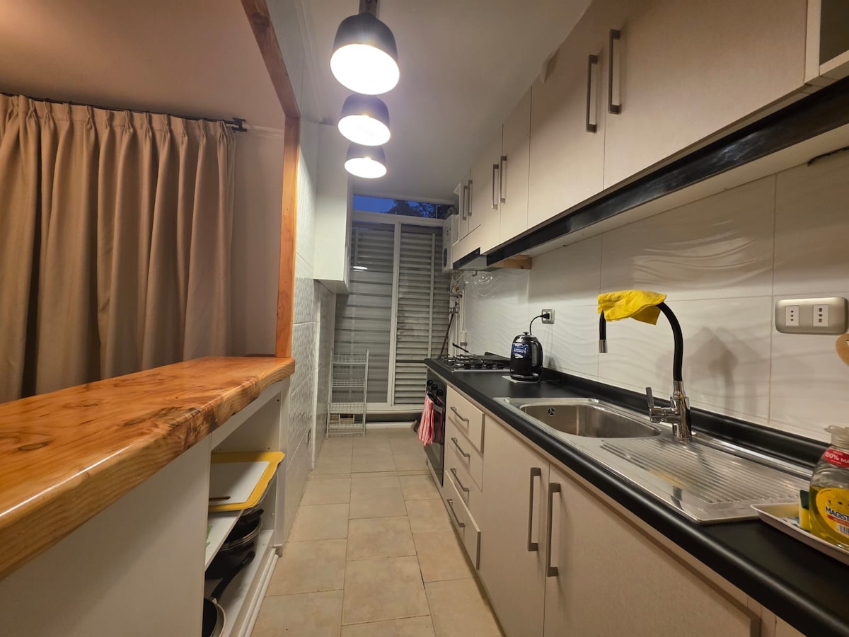 Maganda at komportableng apartment sa loob ng condo, mayroon itong lahat ng amenidad na kailangan mo. Magandang lokasyon na 5 minuto lang ang layo mula sa downtown, na matatagpuan sa 3rd floor (walang elevator). Ilang hakbang mula sa cyclovia, trekking sa virgin hill, mga supermarket, restawran, shopping center (Mall urban space). Puwede ka ring bumisita sa sentro ng ski Portillo, Laguna del Inca, Parque Andino Juncal, Santurario sorTeresa de Los Andes, Termas, San Francisco de lodge, Casino Enjoy at Viñas.