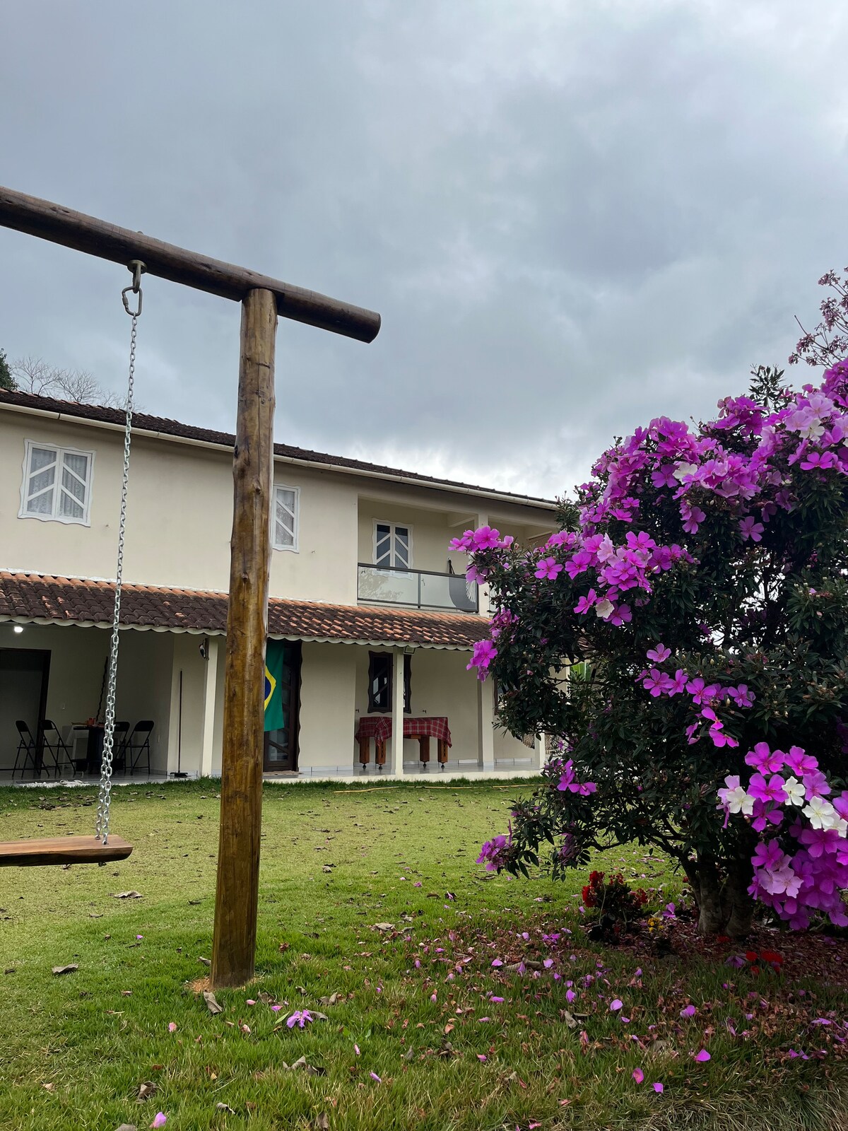 Magrelaks kasama ang buong pamilya sa tahimik na tuluyan na ito. Sa site, mayroon kaming talon na may mahusay na pagkahulog, mga tangke ng isda, panlabas na lugar na may mga mesa ng laro, barbecue, kalan ng kahoy, fire pit para sa baking marshmallow. Matatagpuan ito sa isang rural na lugar malapit sa Posmoser River Village. Magkaroon ng tunay na karanasan sa pamumuhay sa isang ari - arian sa kanayunan: * Mga hayop sa site! * Ovos caipira! * Pagluluto sa kalan ng kahoy! * Makipag - ugnayan sa kalikasan! * Redário sa harap ng talon!